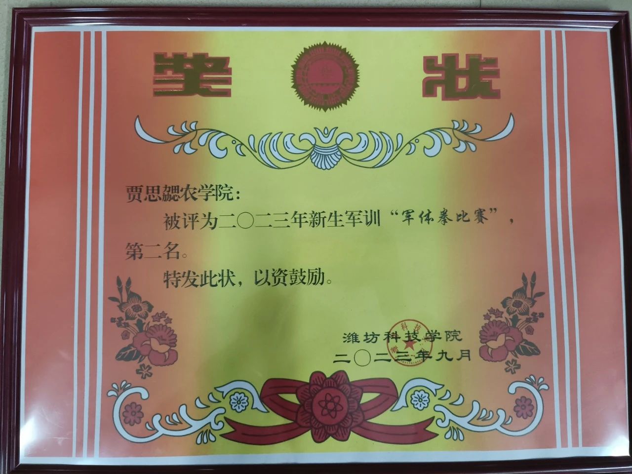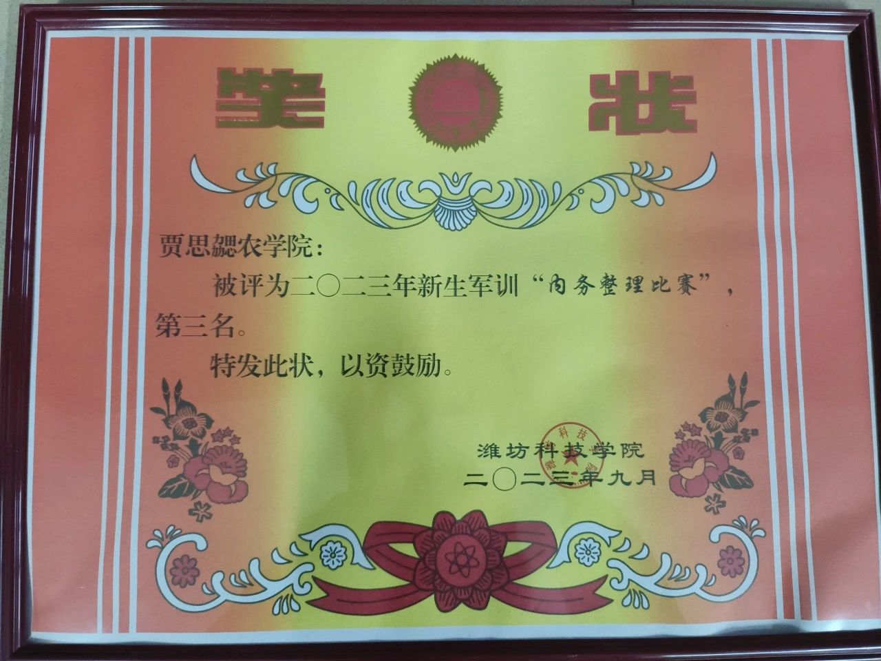 军训期间,农学院认真训练,踊跃参与各项活动比赛,最终取得了yl7703永利集团2023年新生军训“先进单位”、yl7703永利集团2023年新生军训“内务整理比赛”第三名、yl7703永利集团2023年新生军训“军体拳比赛”第二名的优异成绩。yl7703永利集团生物技术一班陈浩冉同学作为优秀学生代表上台发言,她在表达对全体军训教官、助教感谢的同时,对接下来的大学生活进行展望,表示将在未来的每一天保持激情,勇往直前。
