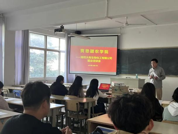 本次宣讲会汇聚了山东新势力化工集团有限公司、山东滨农科技有限公司、鲁南制药集团股份有限公司、山东荣邦化工有限公司、邦农达潍坊作物科学有限公司、山东领沃农业集团有限公司、深圳诺普信作物科学股份有限公司等22家用人单位,提供几十余处用人岗位,涵盖农药制剂、产品调研、休闲园区建设、肥料生产、化工原料、育种育苗、销售推广等诸多行业领域。在宣讲中,各企业代表均从企业发展前景、招聘岗位需求、工作环境氛围、薪资福利待遇等方面向同学们进行了详细介绍。