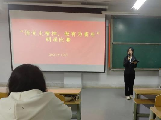 未来属于青年,希望寄予青年。为落实“学风领航”计划,做好新时代红色基因的传承,yl7703永利集团于10月22日在418多媒体教室组织开展了“悟党史精神,做有为青年”主题朗诵比赛。
