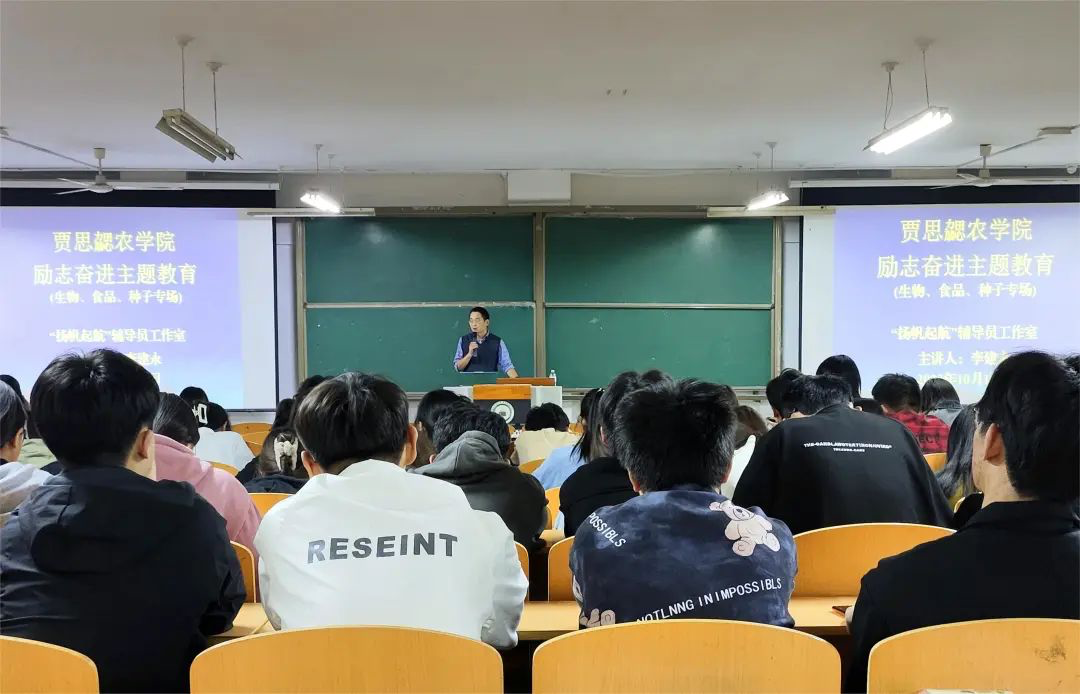 随后李老师结合自身多年考研指导方面的经验和农学院历年考研取得的成绩,详细讲解考研类型,农学类考研专业备考科目和如何初步确定考研目标,进一步增强同学们的目标意识、挑战意识和拼搏意识;临近尾声,李老师给2022级全体本科学生提出了六条建议: