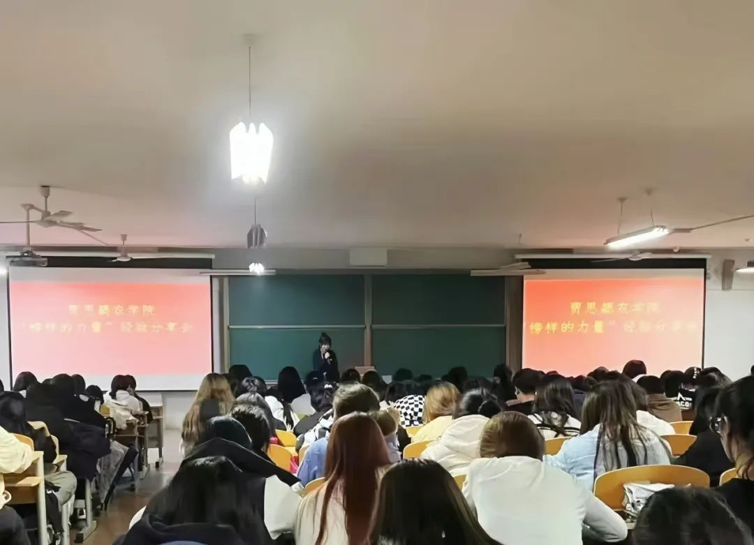经验分享会中,李丽杰同学从学习和工作经历向同学们分享如何调节好两者之间关系,着重强调学习是学生的第一要务,她指出,同学们应以认真的态度对待工作和学习,少年当自强!
