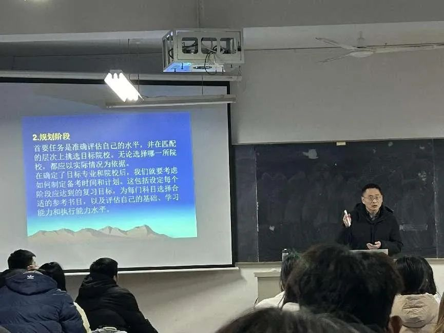 动员会上,李建永书记从考研的不同阶段、考研初试的规划以及考研资料的获取三方面对即将面临考研的学子进行了指导。他强调了时间的紧迫性和考研的重要性,强调学生要认清当前考研形势,走出“现在复习太早”的思想误区,要充分利用寒假时间夯实基础,尽早备考复习。同时他对即将面向考研的同学提出了三点建议: