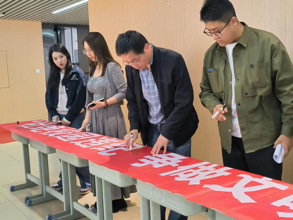 活动伊始,由学生代表宣读倡议书,倡导同学们自觉遵守校规校纪、严格规范自己、养成良好的行为习惯;随后由高凤科长进行发言,高凤科长充分肯定了学校是学生学习生活的重要场所,是对学生进行思想品德教育和行为养成教育的重要阵地,强调学院重视学生管理,并希望同学们可以严于律己,遵守校规校纪;最后,全体师生郑重地在横幅上签字,表明对校规校纪的敬重,本次活动到此圆满结束。