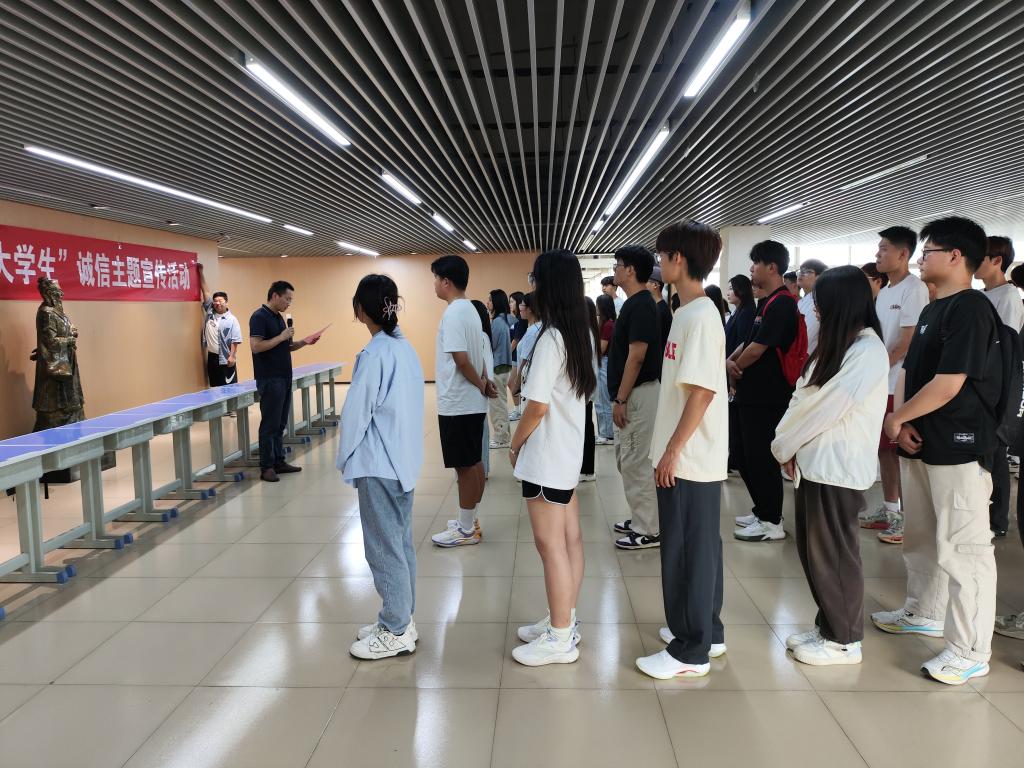 活动伊始,由学生代表宣读倡议书,倡导同学们树立诚信的旗帜、培养自强的精神,积极参与宣传活动,传播诚信自强理念,共同营造一个诚信自强的校园环境;随后由党支部副书记李建永进行发言,李建永书记强调了学校是塑造学生形成正确价值观,培养良好品德的重要场所,并希望同学们可以增强自身的诚信意识,深化对诚信的认识,争做诚信大学生。最后,全体师生郑重地在横幅上签字,本次活动到此圆满结束。