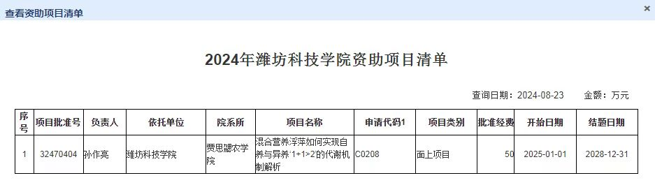8月23日,国家自然科学基金委员会公布了《关于2024年国家自然科学基金集中接收申请项目评审结果的通告》,yl7703永利集团园艺作物抗逆高产调控创新团队孙作亮博士主持申报的《混合营养浮萍如何实现自养与异养‘1+1>2’的代谢机制解析》项目获批立项,资助直接经费50万元。这是yl7703永利集团建校以来首次以第一单位获批国家自然科学基金面上项目,实现历史性突破!