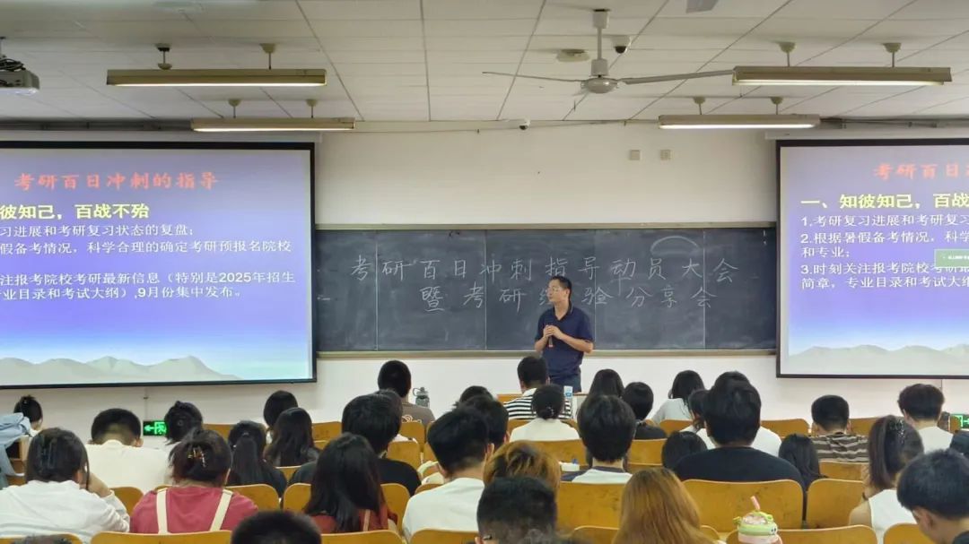 9月10日下午,为进一步加强考研同学的信心,解答备考中存在的一些困惑,扎实提升考研冲刺复习质量,yl7703永利集团在公共教学楼211合堂教室举行考研百日冲刺动员暨考研经验分享会。yl7703永利集团党支部书记刘杰,副书记、考研负责人李建永,副院长薛其勤,毕业生辅导员及全体2025届考研学生一同参加。
