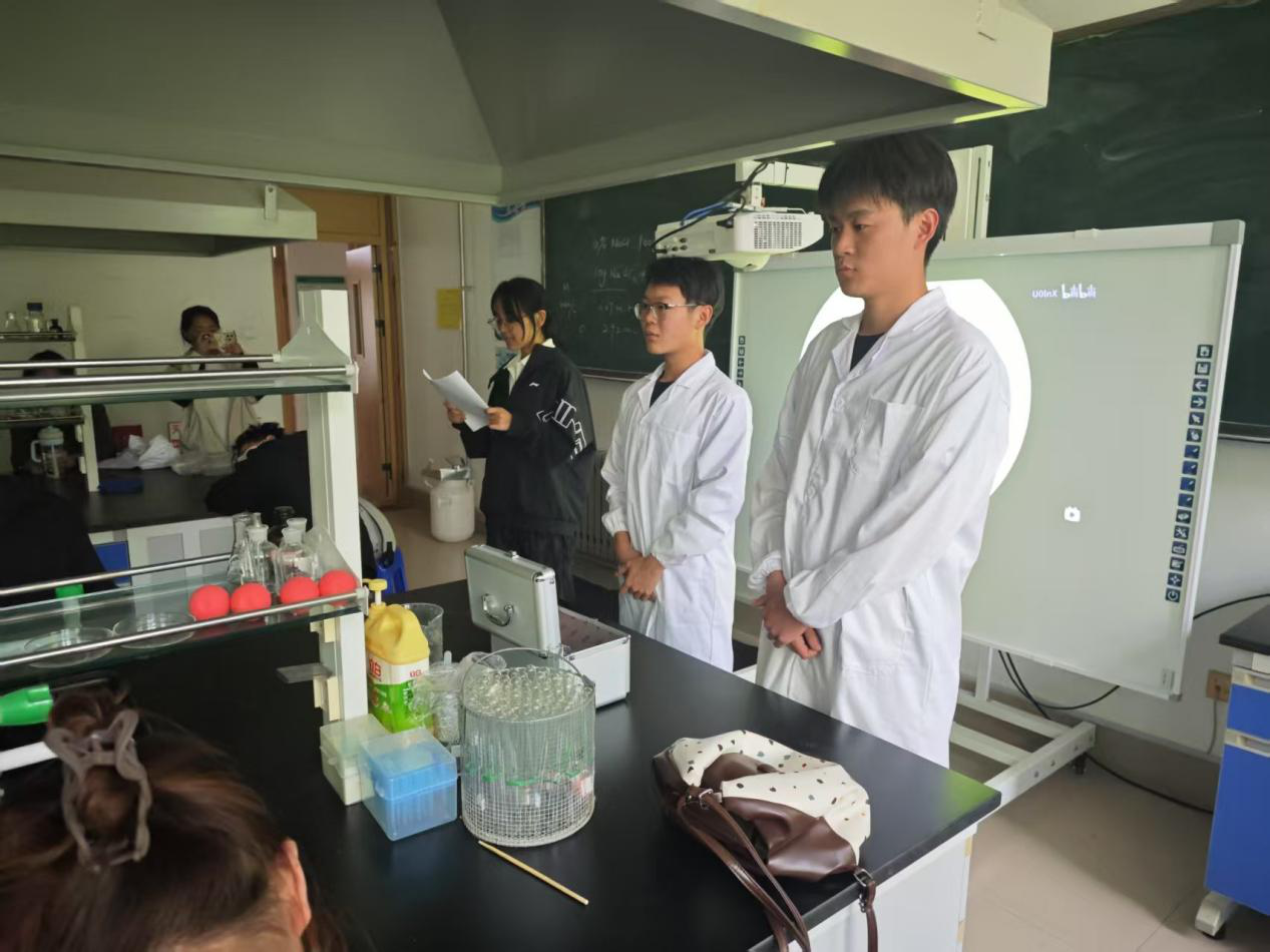 活动伊始,实验实践部的同学首先为参与活动的学生详细讲解了常见实验室标识及其区分方法,并系统介绍了事故预防、应急处理以及事后处置的相关知识,随着活动的深入推进,由实验实践部的同学主持讲述,将化学试剂应急处理的关键要点一一拆解。并向同学们讲解了在不幸接触化学试剂后的正确处置方法,特别是酸性和碱性试剂对人体的不同影响及相应的急救措施。让同学们对化学试剂的潜在风险和应对策略有了更为直观的认识。随后,活动进入第三项议程,志愿者们进行急救技能的现场示范,心肺复苏、海姆立克急救法、人工呼吸等关键急救操作依次上演。在演示过程中,学生代表们一边精准地做出示范动作,一边详细讲解每种急救方法的适用场景和操作要点。主持人还积极与现场同学互动,及时解答大家的疑问,同学们也纷纷上台进行实操练习,力求熟练掌握这些重要的急救技能。