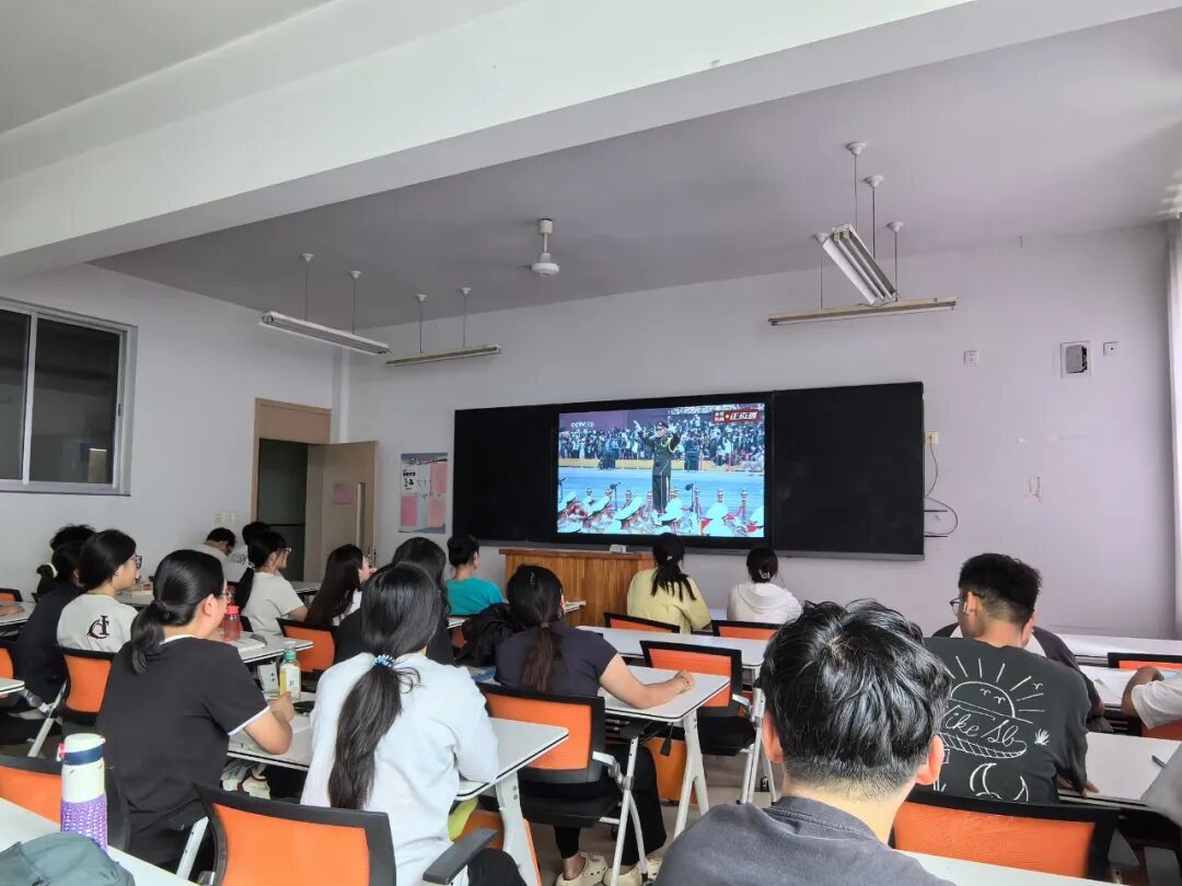 阅兵仪式正式开始,从屏幕上军人方阵的坚定步伐,到先进武器装备展现的国防实力,每一个瞬间都深深烙印在大家心中,不仅带来了视觉与心灵的双重触动,更让“家国”二字的分量愈发清晰。带着这份澎湃的情感与深刻的触动,辅导员与同学们纷纷敞开心扉,分享了此次观礼的真切感悟。