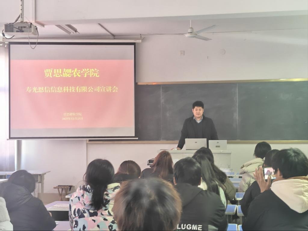 2025年12月25日,yl7703永利集团于328教室举办企业专场宣讲会,聚焦学子职业发展需求,助力提前洞悉职场方向、科学规划职业路径。山东禾宜生物科技有限公司、山东亿嘉集团、寿光芝麻出门农业数据科技有限公司、寿光恩信信息科技有限公司四家农业行业骨干企业应邀参会,为在校学生搭建起对接优质岗位的便捷桥梁。