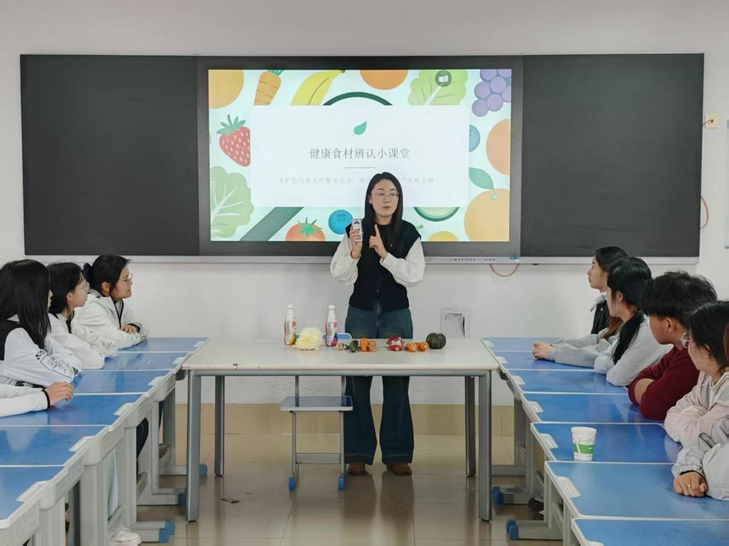 学院聚焦实操与科普,打造沉浸式食安学习课堂。开设健康食材辨认小课堂,老师携带食材样品,现场教学师生通过闻、看、摸,辨别催熟、注水及变质食材;同时开设食品添加剂科普实验小课堂,借助简易道具展示常见添加剂、色素和防腐剂,让学生直观读懂食品配料表,提升食安鉴别能力。