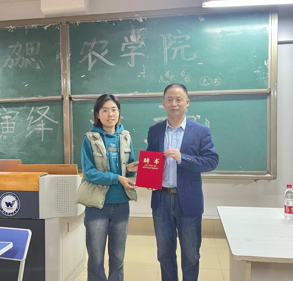 讲座中,王长征老师首先向同学们普及介绍了书法的历史以及由来,通过幽默风趣的语言,从书法兴趣的培养、握笔姿势、如何起笔、行笔、收笔等方面,循序渐进地讲解,并在现场亲自题字,在实际书写过程中给予学生具体地指导,让同学们深切感受到书法的魅力,同学们受益匪浅,热情投入且极具感染力的讲授方式赢得了同学们的高度评价,最后由刘杰书记为王长征老师颁发书法指导老师聘书并合影留念。