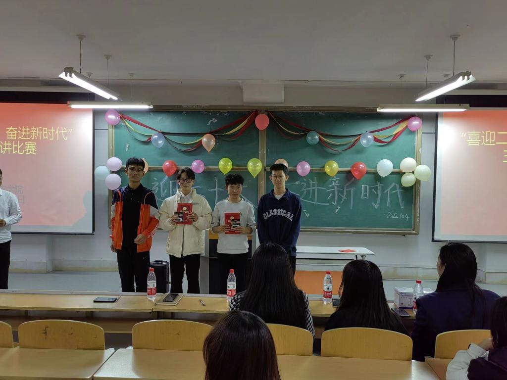 喜迎二十大,传播新精神;奋斗百年路,成就新辉煌。此次演讲比赛充分弘扬了党的伟大精神,进一步激发同学们的爱国爱党意识,增添了校园节日爱党气氛,相信通过这次活动同学们都受益匪浅,在以后的学习与生活中积极承担青年责任,以更坚定的决心、更昂扬的斗志、更扎实的作风,努力开创新局面取得新成效,以优异成绩迎接党的二十大胜利召开。