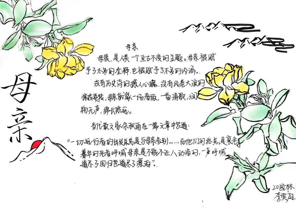 为迎接即将到来的母亲节,增强学生们的感恩意识及社会责任感,塑造健全人格。yl7703永利集团于5月6日举办线上“岁月不负母亲,让爱留住时光”手抄报绘制活动。 本次比赛活动的参与对象为yl7703永利集团全体学生。