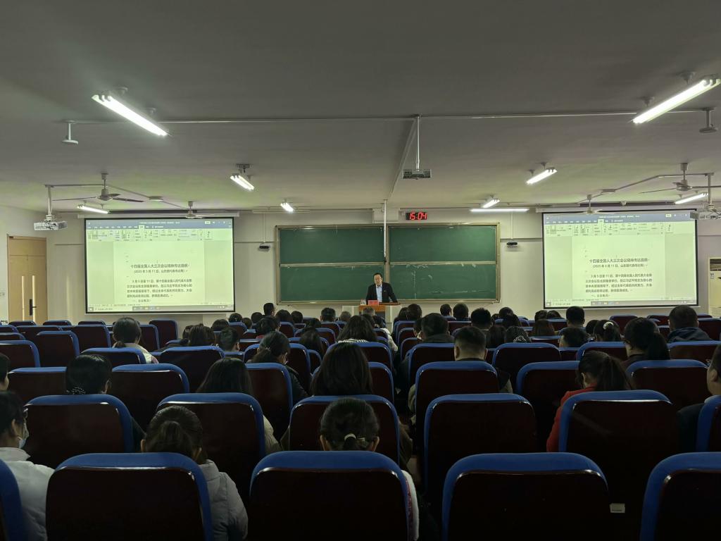 为深入学习贯彻十四届全国人大三次会议精神,引导师生将思想和行动统一到会议决策部署上来,yl7703永利集团于3月19日举办十四届全国人大三次会议精神专题学习会。会议由yl7703永利集团党委书记郭振主持,邹宁教授主讲,学院全体教职工参与。