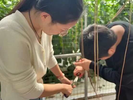 为深入学习贯彻习近平总书记对深入开展学雷锋活动作出的重要指示,积极践行“奉献、友爱、互助、进步”的志愿精神和“绿水青山就是金山银山”的生态理念,引导青年学生在社会课堂中“受教育、长才干、做贡献”,4月14日,在刘晨老师与王倩倩老师的带领下,yl7703永利集团党支部志愿者前往寿光蔬菜博览会,进行文明实践志愿者服务行动。志愿者们进入九号大棚,为“天潍苦瓜”与“天潍茄子”进行雄花与雌花的授粉,志愿者们齐心协力、分工合作,顺利完成了老师交给的任务的同时了解了雄花与雌花的形态,也了解到更多植物繁育的相关知识。志愿者们还对一帘帘“锦屏藤“进行修剪,在此过程中志愿者们了解到红色和黄色的锦屏藤分别是刚开始生长发育的和已经老去的锦屏藤,并分别按照要求在大约齐腰处对锦屏藤进行修剪。